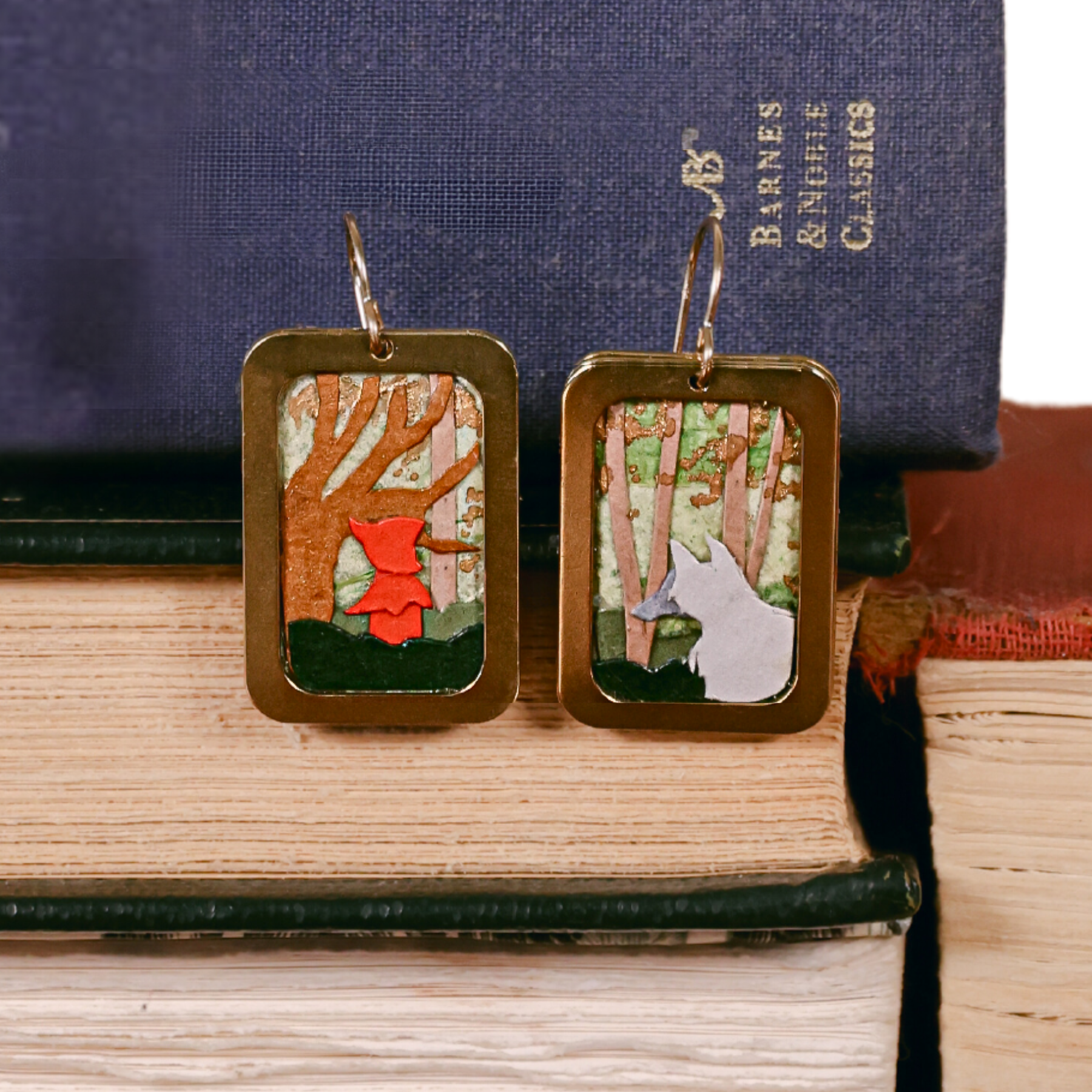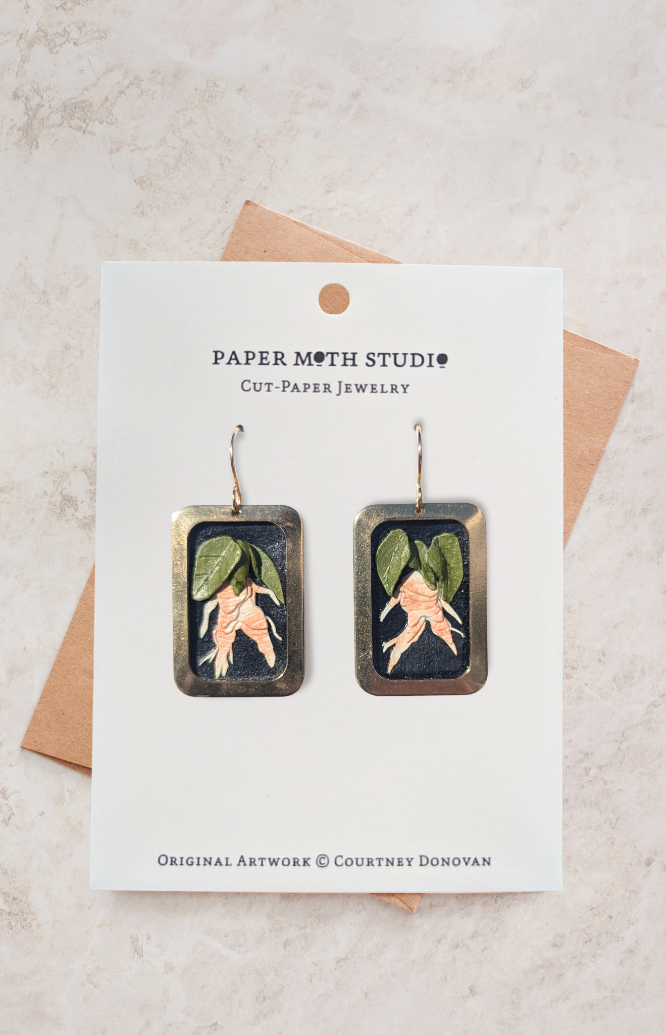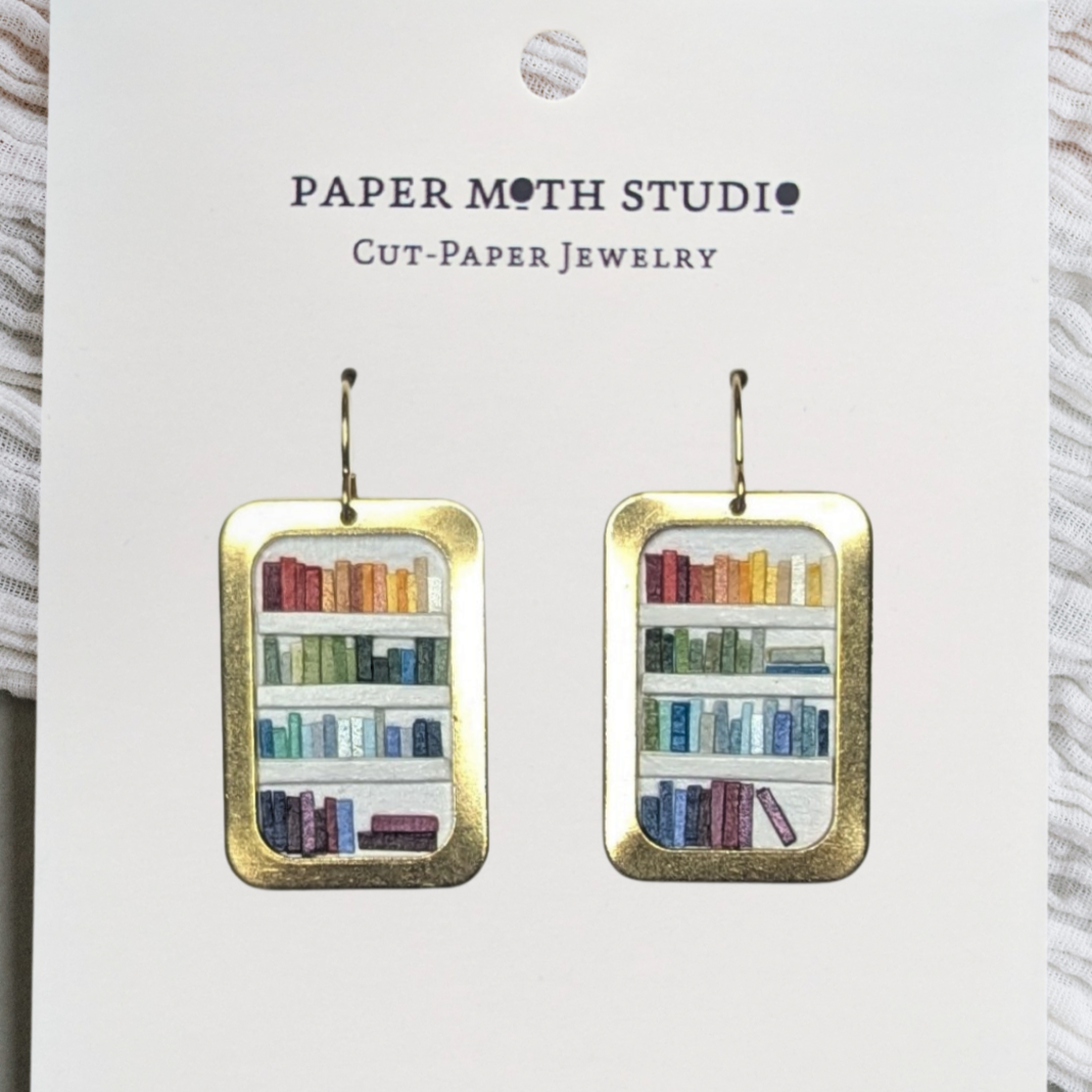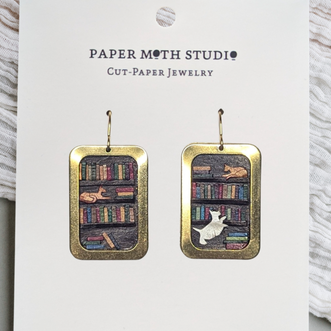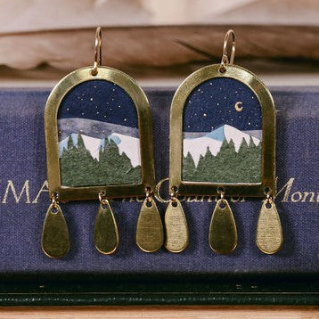 Elevate your style effortlessly with handcrafted earrings, meticulously designed with delicate cut-paper art encased within brass frames and completed with gold-filled ear wires for long-lasting comfort. Each piece is a personal statement, reflecting my passion for storytelling, traditional craftsmanship, and modern design. These earrings aren't just accessories; they're wearable works of art that speak to individuality and creativity. Given that each piece is handmade, please note that there will be slight variances from the design pictured.