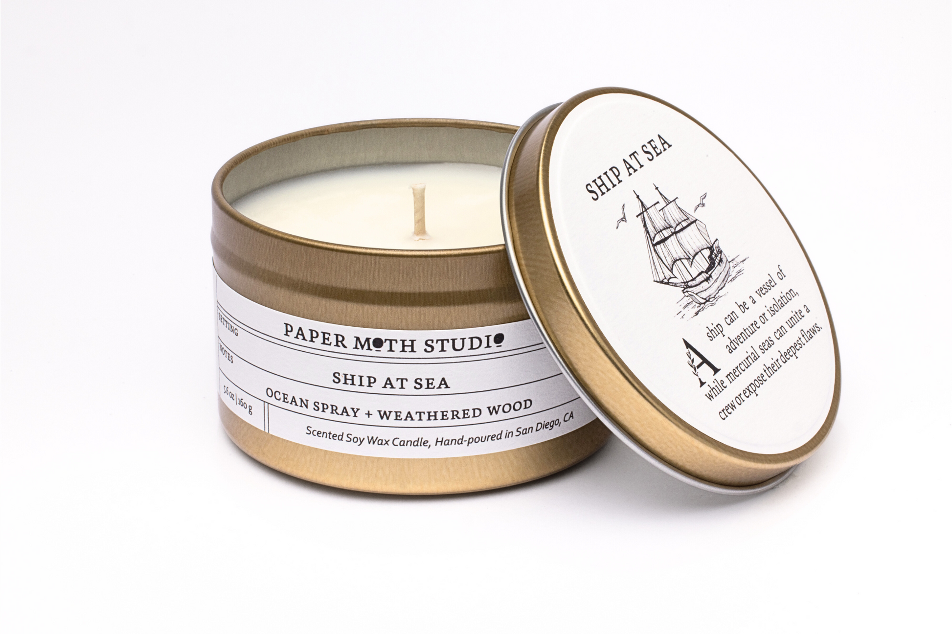 Scented soy-wax candles, hand-poured in small batches in San Diego, CA.